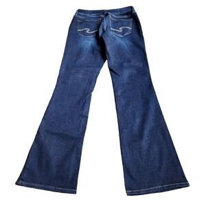 Silver Jeans Co., Navy blue,suki, slim boot, denim Jean pants. Zip-up fly with button closure, two front pockets with a watch pocket, two back pockets, and a belt loops. Super comfortable, lightweight,stretchy and in great condition size 28/31