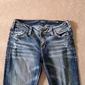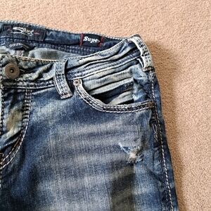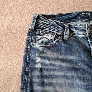 Silver Jeans Girlfriend Denim Blue Women's 28 Faded Distressed Stretch Casual
