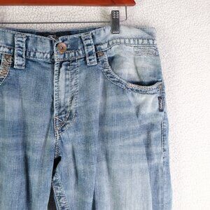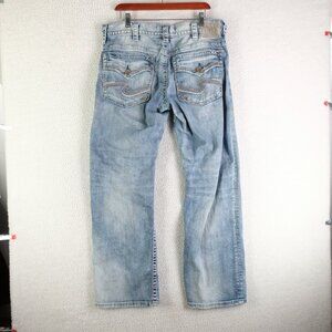 Silver Jeans Mens 34X32 Zac Relaxed Fit Straight Stone Wash Flap Pockets Retro