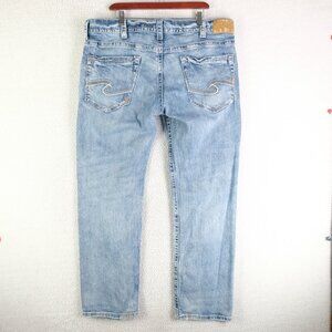 Silver Jeans Mens 40X32 Blue Eddie Medium Wash Relaxed Tapered Whiskers Retro