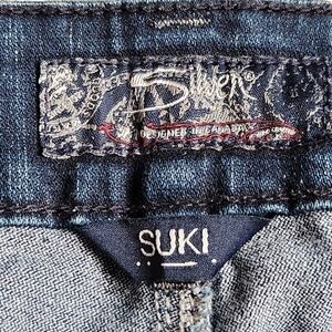 Silver Jeans, SUKI,mid,pencil, skinny, blue denim Jean pants. Zip-up fly with button closure, two front pockets with a watch pocket, two back pockets and belt loops. Super comfortable, stretchy, lightweight jeans in good condition