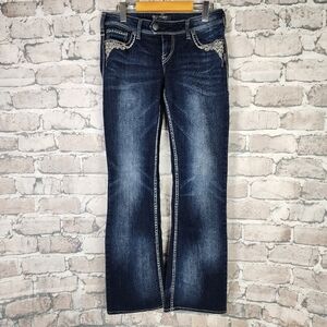 Silver Jeans Tuesday Low Rise Factory Fade Whiskered Size W29/L33 Dark Wash