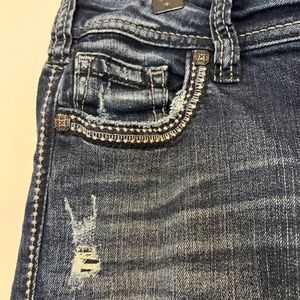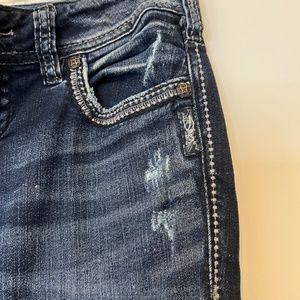 Made of a cotton blend with a dark wash, these jeans are easy to care for and can be machine washed. With a 32-inch inseam and available in size 28, these jeans are a must-have for any season. Whether you're heading out shopping or a night out in the city, these Silver Jeans are sure to turn heads.