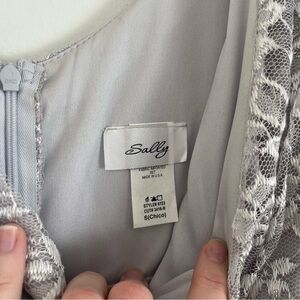 Silver Lace Chiffon Dress S Glam Formal Gown w/ Brooch Mother of the Bride Prom