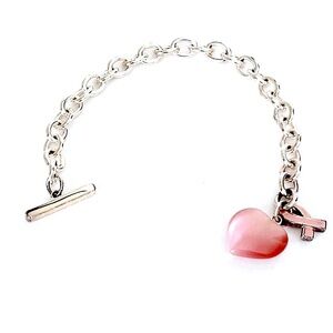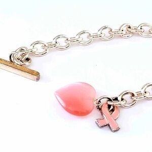 Silver Large Chain Link Breast Cancer Awareness Ribbon Toggle Clasp Bracelet