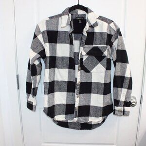 Silver Long Sleeve Button Down Plaid Boyfriend Fit Shacket Size XSMALL
