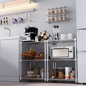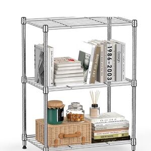Organize your space with this sleek silver metal storage shelf. Perfect for any room, it offers a stylish and functional solution for your storage needs.