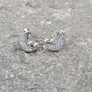 Cute and whimsical silver moon and star stud earrings with tiny cubic zirconia gemstones for women and girls. Great for gifts. Brand new and never been used. This was given as a gift, needs a new home! ✨️Make a bundle to save!✨️ ✨️2 in bundle, 15% off!✨️ ✨️2+ in bundle, 15% off + tiny surprise gift!✨️ Style girly, preppy, feminine, cute, ethereal, fairycore, fairy, celestial, faery, faerycore, fae, bohemian, boho, holiday gift, valentines, ethereal essence, whimsical, whimsigoth, whimsygoth