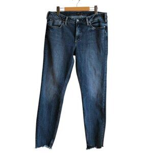 Silver Most Wanted Mid Rise Skinny Jeans Size 34 Dark Wash Frayed Hem
