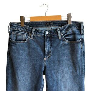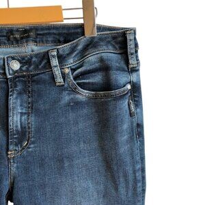 Silver Most Wanted Mid Rise Skinny Jeans Size 34 Dark Wash Frayed Hem
