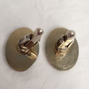 Vintage 40s to 50s, Made in Albuquerque, beautiful Blue Green Purple, changes with the light, Sterling Silver or silver plate, engraved Bell Logo, no other markings, one backing is bent, does not affect wear.