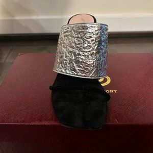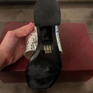 Like new silver mules perfect for a night out; almost like new, wore 3-4 times. Come with a box.