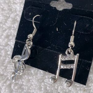 Elegant silver earrings with musical note design. Perfect for music lovers.