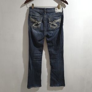 Silver | Natsuki Women's Blue Jeans With Fade And Rhinestones Straight Leg