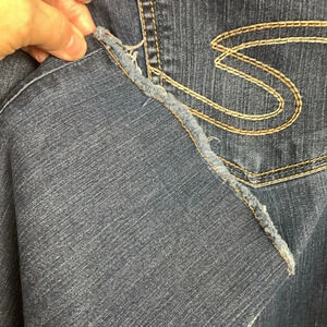 These are in excellent condition. Soft denim. Please measure to be sure as I believe these have been cut off at the bottom.