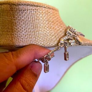 This stunning silver necklace features sparkling crystal accents, perfect for adding a touch of elegance to any outfit. Ideal for special occasions or everyday wear.