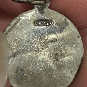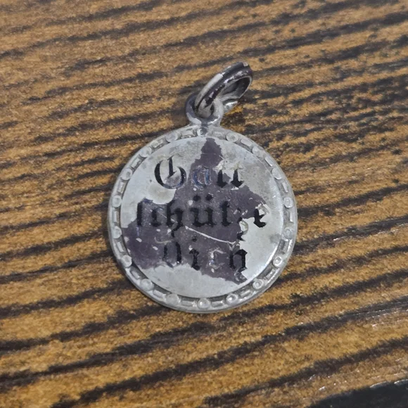 Round silver pendant featuring an inscription. Stamped 900 silver. vintage from Germany circa 1960s. discoloured from age. Elegant and timeless design. inscription says: Gott behüte dich" (God protect you).