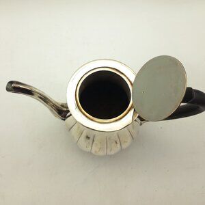 The teapot is 8 1/4" to the top of the lid and the body is 4 1/2" between the spout and handle.