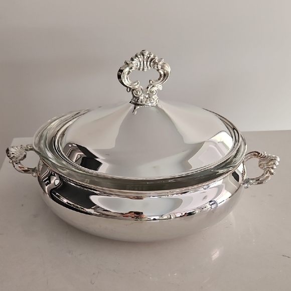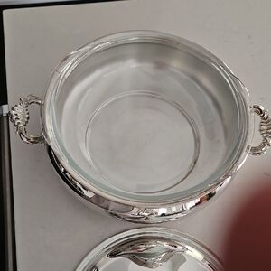 Elevate your serving game with this vintage Pyrex buffet server! This lovely piece features a silver-plated stand with a glass Pyrex bowl, perfect for keeping your culinary creations warm and stylishly displayed. There is some cosmetic damage to the metal (pictured).