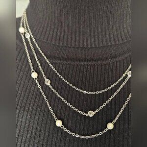 Silver Plated with Faux Pearls and Crystals 3 Layer Necklace