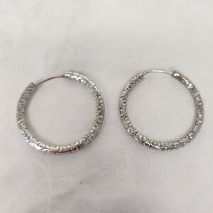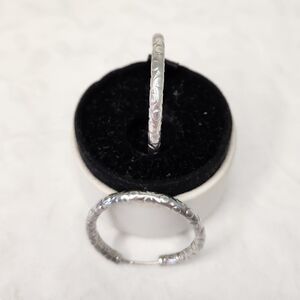 Thick Hollow Sterling Silver Hoop Earrings with textured Polkadots.