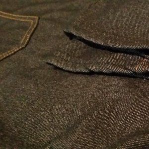 Silver jean-style polyester/spandex pant leggings with a stretchy waist band and soft interior fabric. Black/Gray.