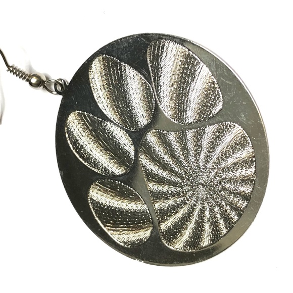 Beautiful dangle earrings, lightweight, made of silver color brass, nickel-free (allergy free), disc shape, puppy paw design.