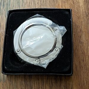 Elegant silver purse hook. Perfect for keeping your bag off the floor.