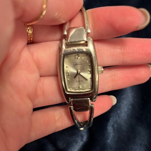 Cute silver rectangle watch. For smaller wrists. Very unique and retro