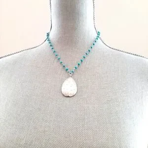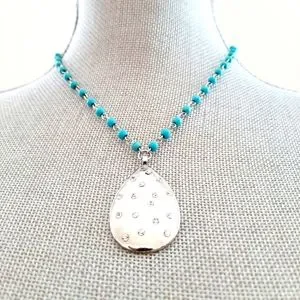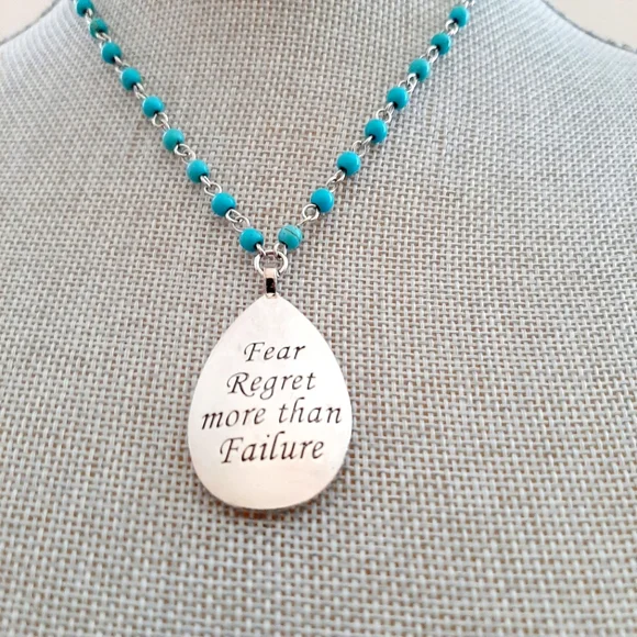 " Fear Regret more than Failure" Pendant with turquoise beads. NWOT. With silver tone chain and lobster clasp.
