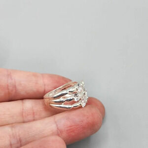 The ring is marked 925 China. It has not been tested for sterling silver. Bright and shiny, in beautiful condition. Has a maker's mark that I can't identify.