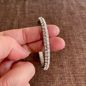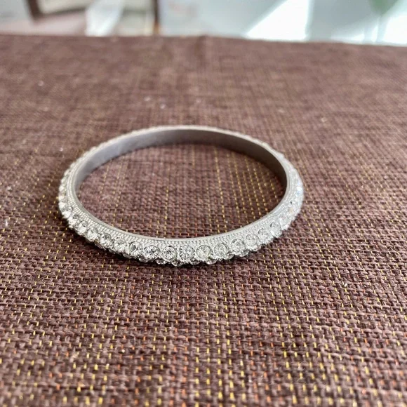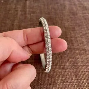A bold rhinestone detailed bangle makes a statement with many outfits. Perfect for adding a little glamour to your look. One stone missing, as shown in video.