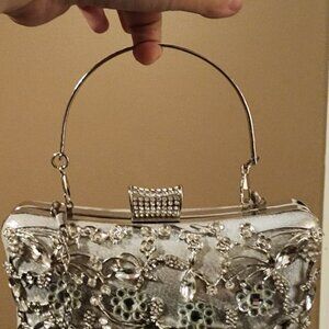 Silver Rhinestone Clutch with Removable Chain