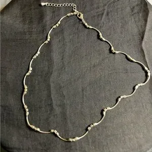 This exquisite silver necklace showcases a delicate chain adorned with alternating round and barrel-shaped links. Its adjustable clasp ensures a perfect fit, making it a versatile addition to any jewelry collection.