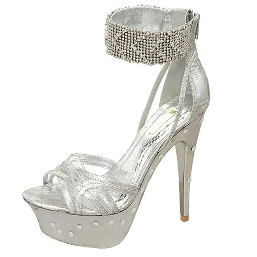 Silver Rhinestone Platform Heels