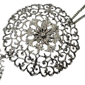 Two different sized large filigree pendants- one has a pin so this necklace can double as a large bold brooch