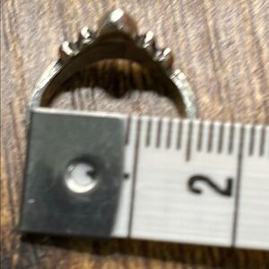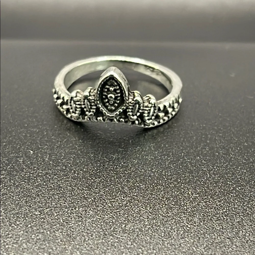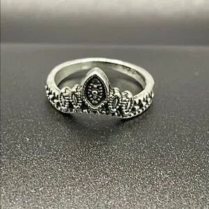This elegant silver ring features intricate detailing, perfect for adding a touch of sophistication to any outfit. 15 millimetres. Costume jewelry. Sold as-is.