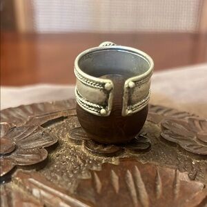 Magnificent imitation of Indian style jewelry with silver tone metal and burnt red stone.