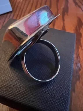 By Isis Jewels. 🔥 Bold statement ring. Large white rectangular stone set in polished silver metal. Sleek modern design. The stone is beautiful…Hope the pictures show this. 🤩