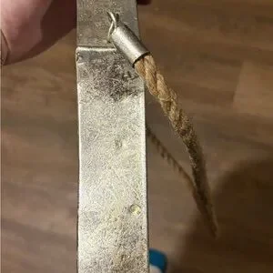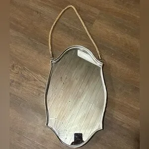 Elegant silver mirror with a rope hanger. Perfect for any room.