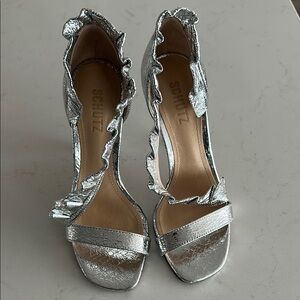 Silver Ruffle Strap Heels
