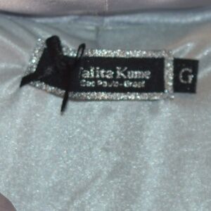 Sweet little Dress with pleats and cowl-style collar and bow. Soft Satiny, shiny silver. SZ L by Talita Kume
