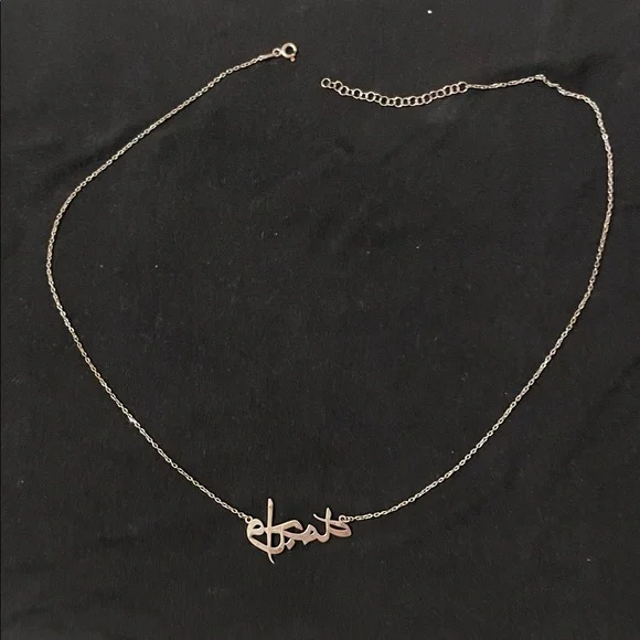 Elegant silver script necklace perfect for any occasion. Add a touch of sophistication to your outfit.