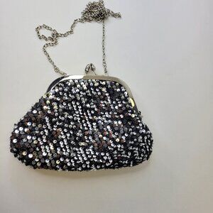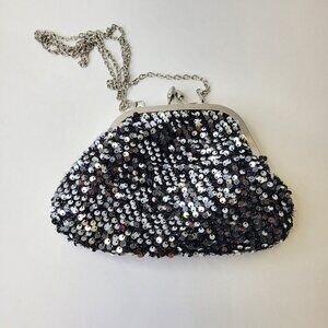 Silver Sequin Clutch Purse Evening Glitter Cocktail Purse Black Crossbody Clutch