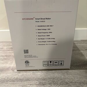 Brand new, never opened. Enhance your kitchen with the Smart Bread Maker. This sleek silver appliance offers automatic and programmable features for effortless bread making.