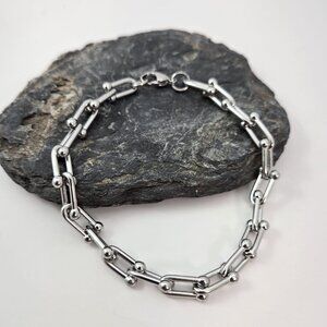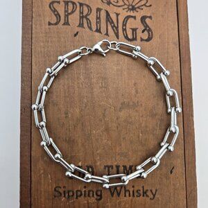 I'm pleased to offer this amazing chain bracelet in silver color! This is a super popular bracelet right now, combining everyday wearability with a modern flair. I love the feel of this one on, super comfy. The amazing compliments you get while wearing this makes it a standout!
