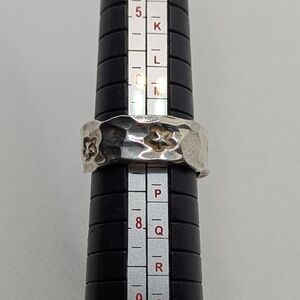 Elegant silver ring with star pattern. made by versani. 925 silver nice thick hammered texture band