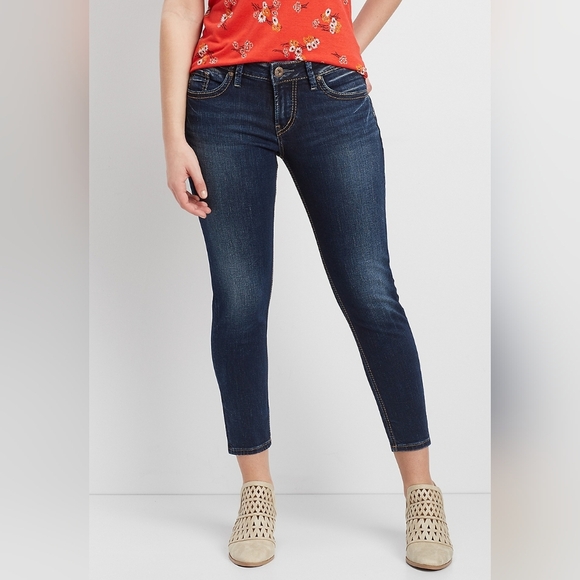 Silver Suki Cropped Denim Jeans Skinny Capri Stretchy Dark Wash Mid Rise Size 28