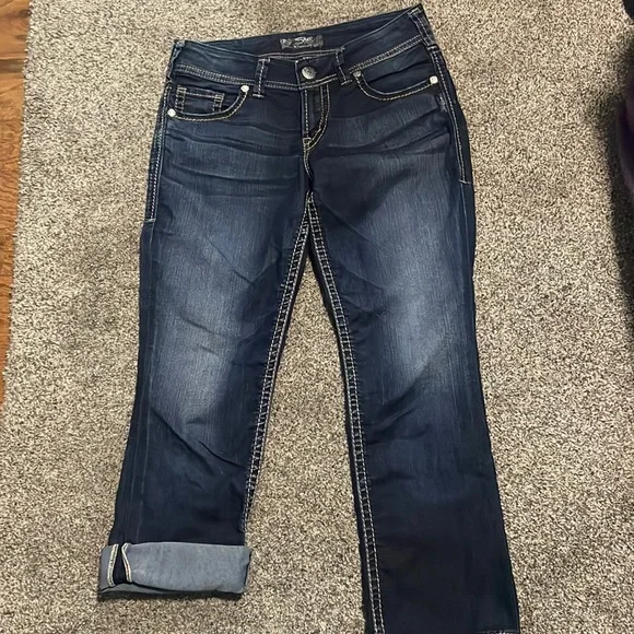 Silver Suki Mid Rise Capri - Size 28. Good to excellent shape only wear is on tag shown in picture.