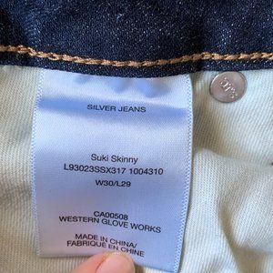 Worn once! Silver jeans, Suki Skinny size W30/L29. Very flattering!